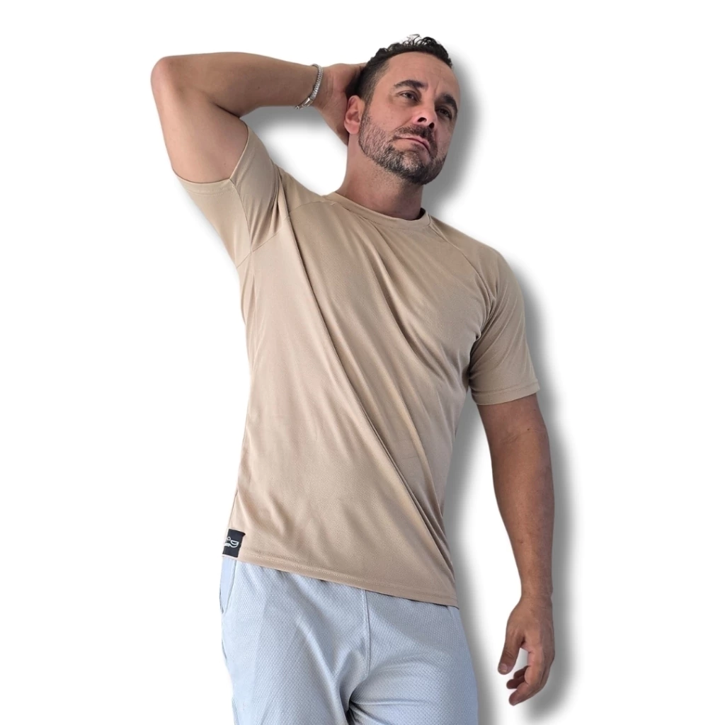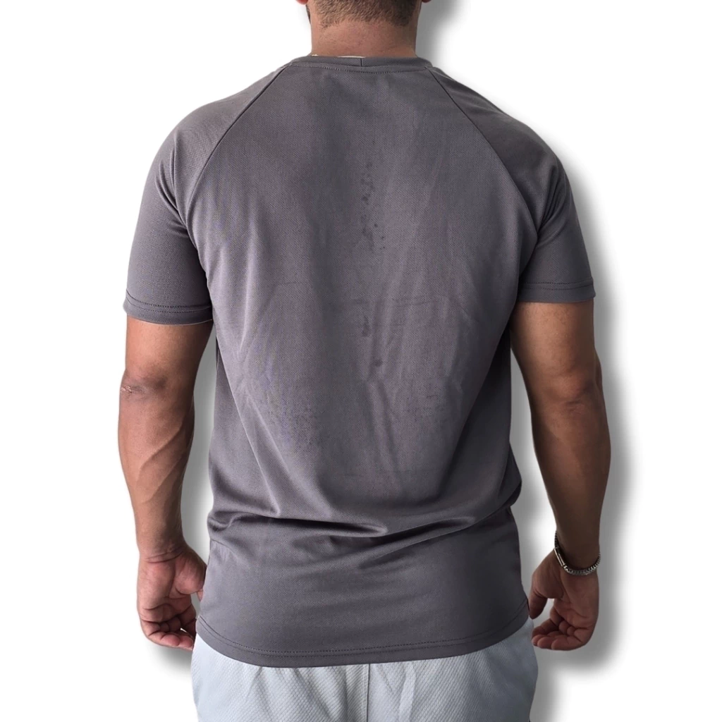 As **mangas raglan** proporcionam **liberdade total de movimento**, ideal para esportes que exigem amplitude, como crossfit, musculação ou vôlei. O caimento moderno e o design esportivo agregam um toque de estilo às suas produções, enquanto a etiqueta sem costuras evita irritações na pele.