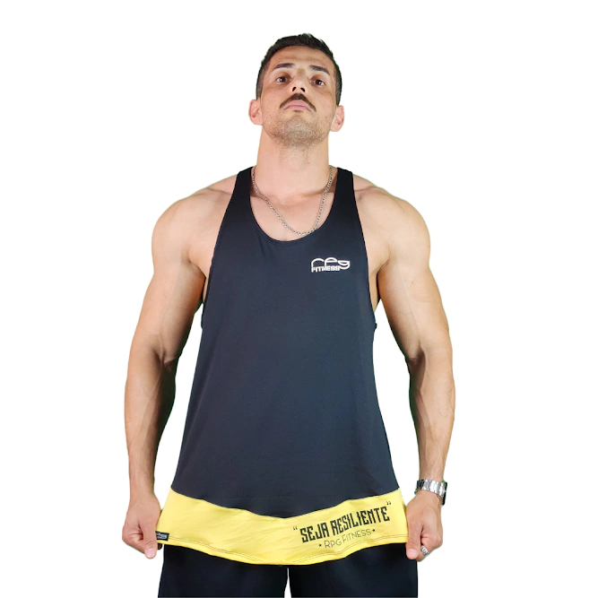 **Palavras-chave:** Regata Cavada Bicolor, Regata Motivacional Rpg Fitness, Regata Fitness Poliflex, Regata Poliéster e Elastano, Regata para Treinos, Roupa de Academia Estilosa.